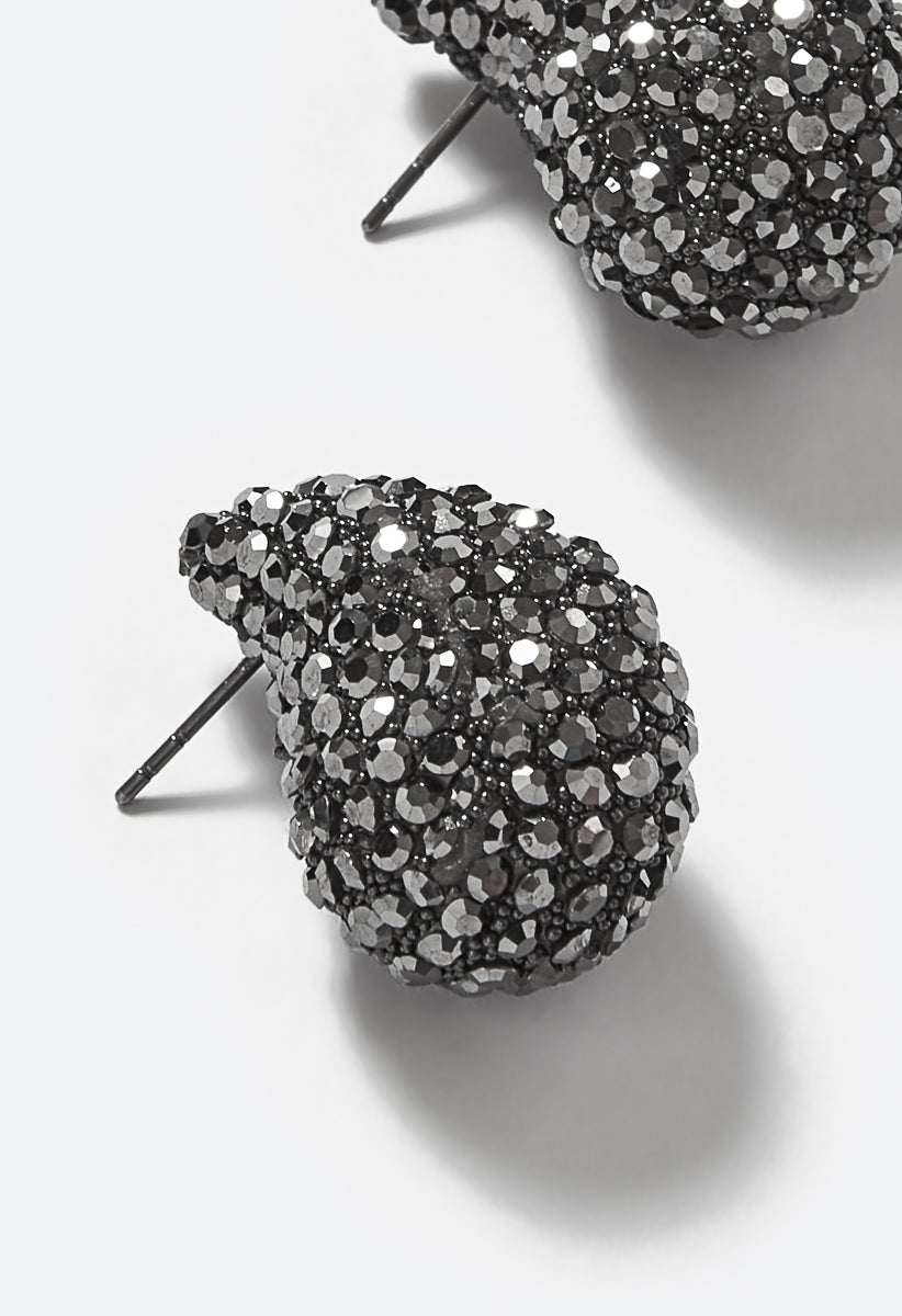 Get Ready To Shine In Frey Sparkle Teardrop Stud Material : 50% Plastic,40% Glass,10% Iron Dimensions : Length:0.8 Closure : Bullet & Rubber Stoppers Imported