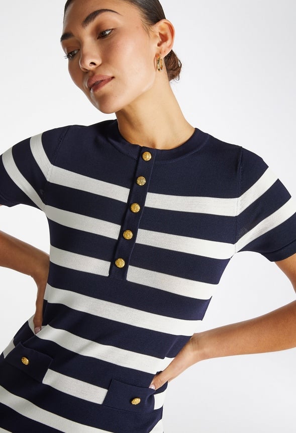 Material : 60% Rayon, 30% Nylon, 10% Polyester Length : 33 1/2 Pockets : Faux pockets with faux buttons Closure : Faux button front closure Care : Machine wash. Please refer to care instruction label inside garment for further details. Imported
