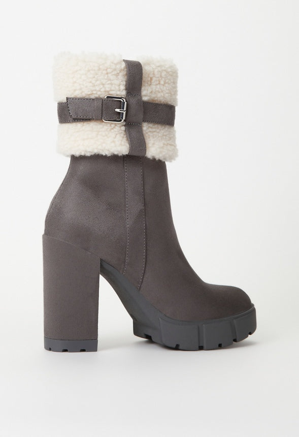Material : Faux Suede Platform Height : 1.25 Outside Heel Height : 4.25 Shaft Height : 7.0 Closure : Functional Inside Zipper Imported