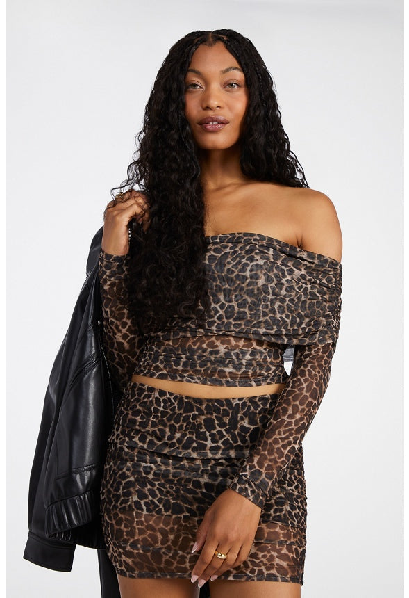 Mesh Off Shoulder Long Sleeve Top